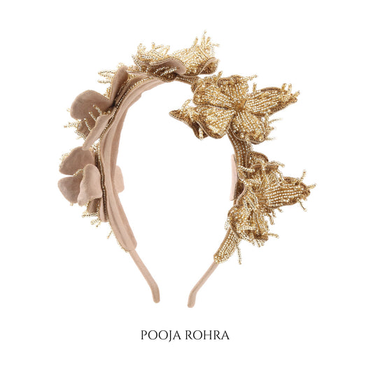 Discover the perfect blend of tradition and modern style with our exquisite handmade headbands. Each piece is crafted with meticulous attention to detail, featuring intricate embroidery that reflects our passion for artistry. Whether you're looking for a statement accessory for a special occasion or a chic addition to your everyday look, our headbands are designed to offer both comfort and elegance. Made with high-quality materials, including vegan suede backing for a soft, irritation-free wear, these headbands are as practical as they are beautiful. Add a touch of sophistication to your hairstyle with a unique headband from Label Pooja Rohra.
