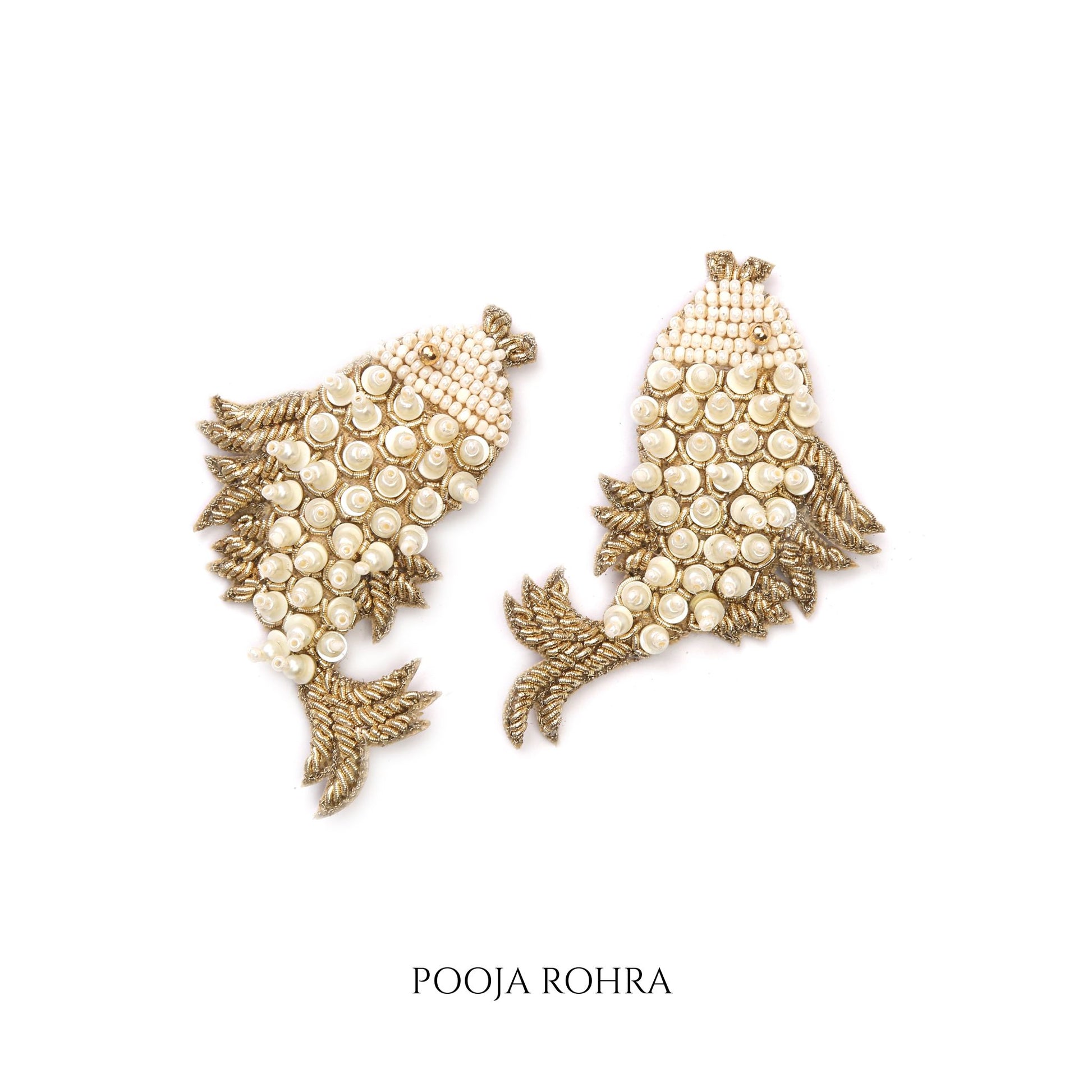 Make your hairstyle shine with our fish motif hairclip, inspired by the rhythm of water and the glow of moonlight. Handcrafted with metallic threads, crystals, and pearls, it captures the shimmer of moonlight over calm waters adding a hint of shimmer to your hair. Blending traditional artistry with modern glam this lightweight clip compliments both Indian and Conetmporary hairstyles - From sleek buns and soft curls to playful ponytails, messy braids, and chic half-tie hairstyles this piece brings effortless glamour and feels luxe to every look. A perfect statement hair accessory for haldi, mehendi, weddings and cocktail parties.